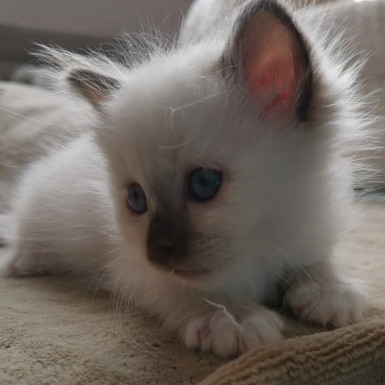 Poes is onze eerste birmaan. Ze is bluepoint, en inmiddels gesteriliseerd. Ze heeft hele mooie aftekeningen en is heel erg lief, maar ligt ook graag ergens rustig in haar eentje. Ze houd van buiten spelen.