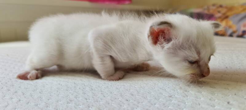 Update 2 augustus. Helaas is het katertje overleden. Het poesje doet het prima! Ik denk dat het een chocolate tortie point wordt, maar helemaal zeker ben ik nog niet.