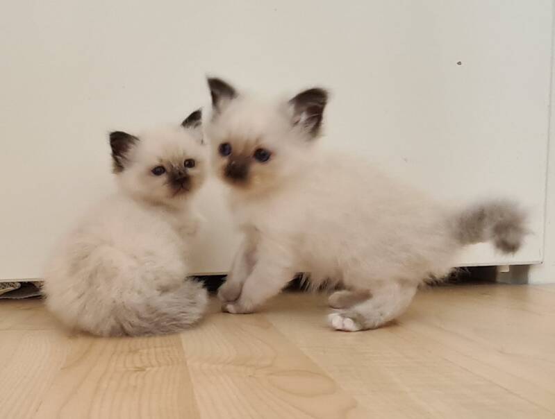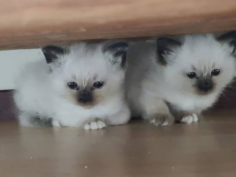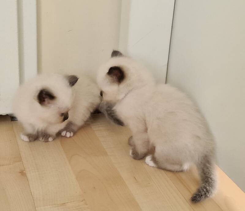 Update 29 maart: De poesjes groeien goed. ! poesje blijft denk ik een sealpoint, van het andere poesje is de neusspiegel lichter, dus deze wordt misschien nog tortie. Foto's volgen snel!