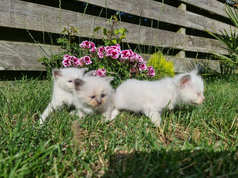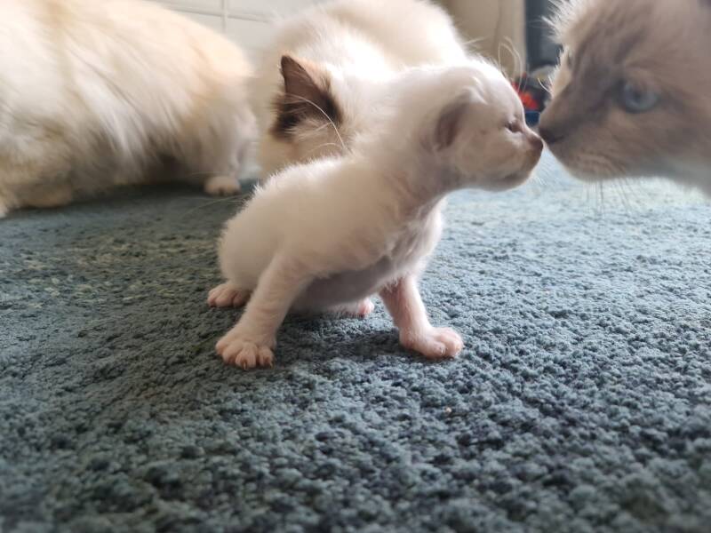 20 juni: Wat een mooi nestje is dit! er is 1 poesje met show kwaliteiten geboren, zij is een bluepoint. Het andere posje is net zo mooi maar de aftekeningen zijn net niet perfect, zij is ook en bluepoint, en het katertje is een lilacpoint.